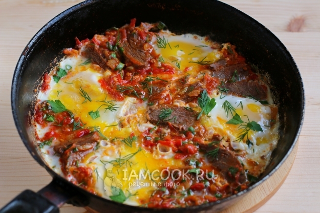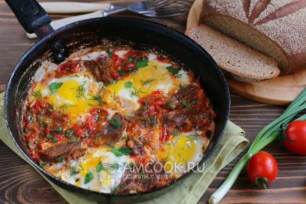 Казалось бы, вроде помидоры да яйца, но добавляя различные овощи, зелень, специи, меняя их пропорции, можно получить всегда новое блюдо, и это всегда будет очень вкусно! А если добавить кусочки мяса, то получится полноценный сытный обед или ужин. Такое блюдо всегда подают к столу прямо в сковороде, в которой его готовили. К шакшуке можно подать любой хлеб, лепешки или лаваш, который можно макать в сочную шакшуку.