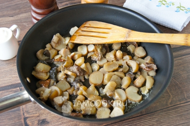 Если вы будете готовить из свежих шампиньонов или вешенок, их достаточно почистить, промыть и можно сразу жарить, а лесные нужно предварительно отварить, примерно минут 15-20.