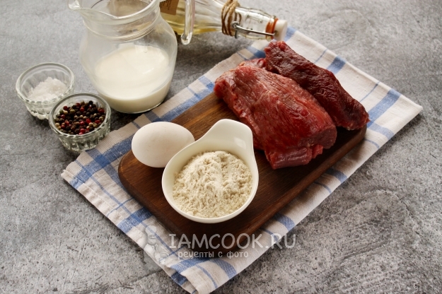 Чтобы приготовить говяжьи отбивные в кляре на сковороде, возьмите продукты по списку.