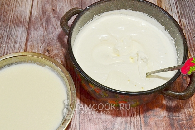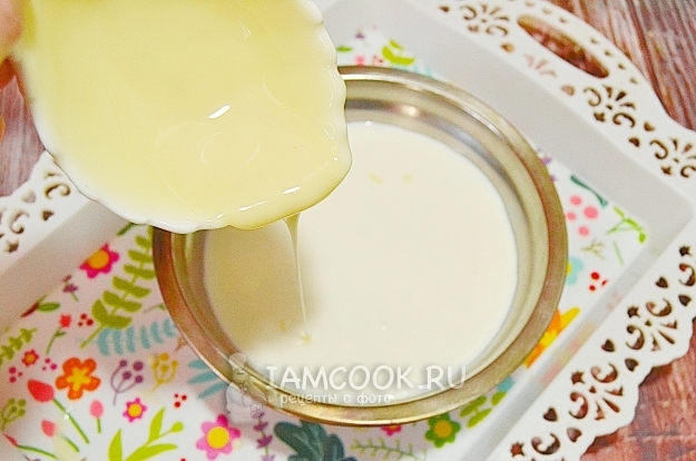 В сливки добавим сгущенку.