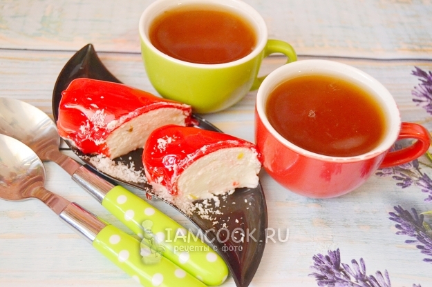 С тех пор, как я попробовала приготовить муссовое пирожное в первый раз, я готовлю муссовые пирожные довольно часто: использую различные формы, меняю рецепты, вношу различные добавки. В сегодняшнем рецепте мусса я шоколад заменила сгущенным молоком. Получилось неплохо, ничуть не хуже, чем на шоколаде. В качестве добавки в пирожное я внесла немного цукатов — клубничных и киви. Ну а сверху покрыла мусс зеркальной глазурью — белой и красной.