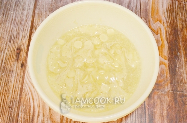 Эту горячую массу нальем в белый шоколад. Перемешаем.