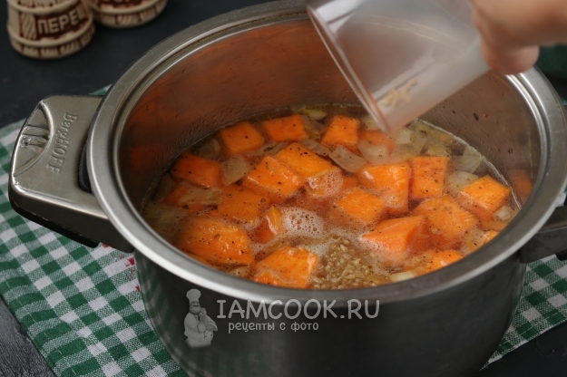 Варить суп 20 минут, периодически помешивая, до мягкости тыквы.