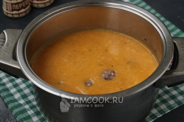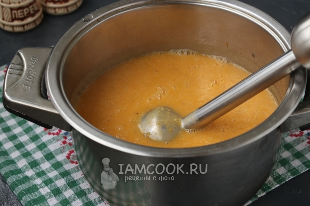 Когда тыква будет готова, суп пюрировать при помощи погружного блендера.