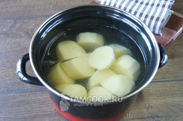 Для начала вымоем и очистим картофель, сварим в подсоленной воде до полной готовности.