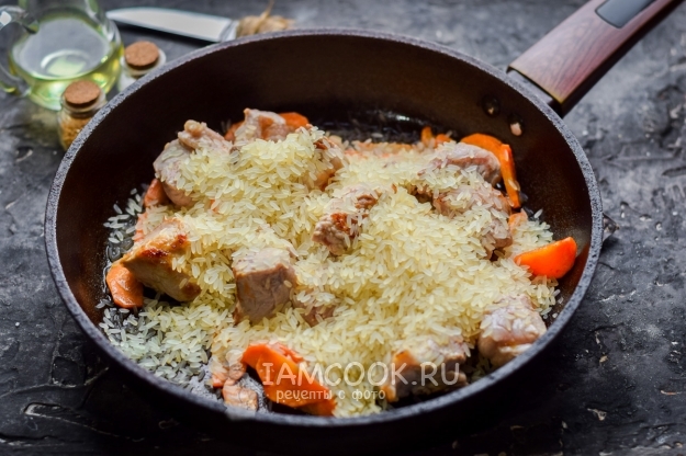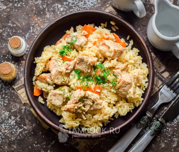 Предлагаю сегодня вам приготовить вкусный и сытный плов без лука. Вариаций плова придумано уже такое большое количество, что сосчитать довольно сложно, и каждый плов по-своему получается особенным. Мой рецепт довольно простой, отличается от обычного плова лишь тем, что лука здесь нет, но вкус особо от этого не страдает. Подавать плов к столу можно с разными овощами или соленьями, можно добавить немного томатного соуса или домашнего кетчупа.