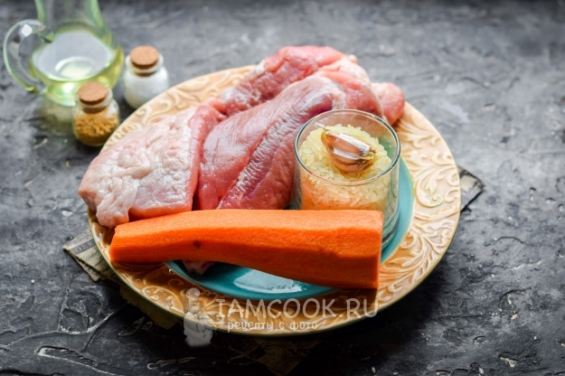 Подготовить все продукты по списку. Рис выбрать такой, который вы привыкли использовать для плова.