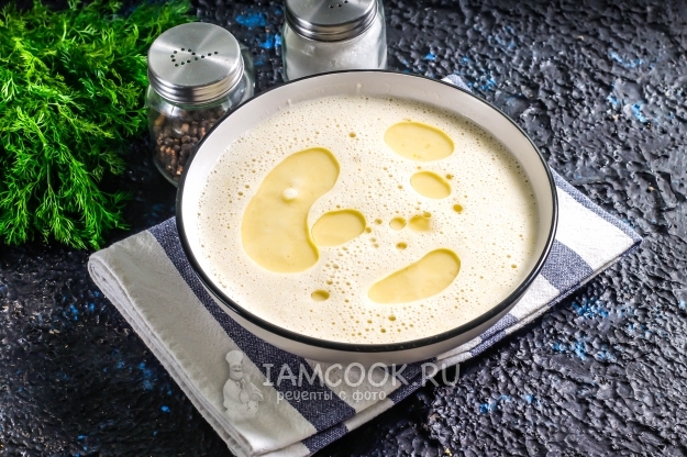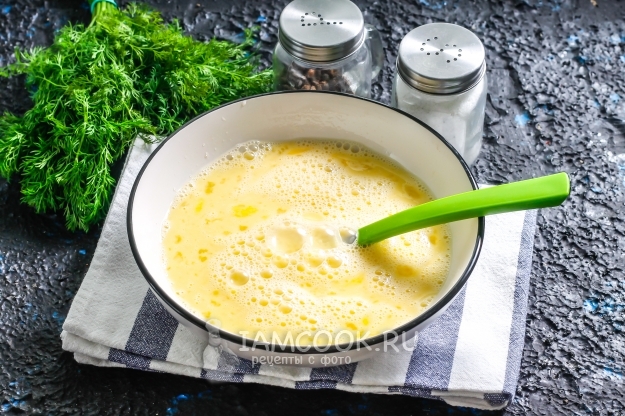 В глубокой емкости взбейте куриные яйца и молоко, добавив пару щепоток соли.