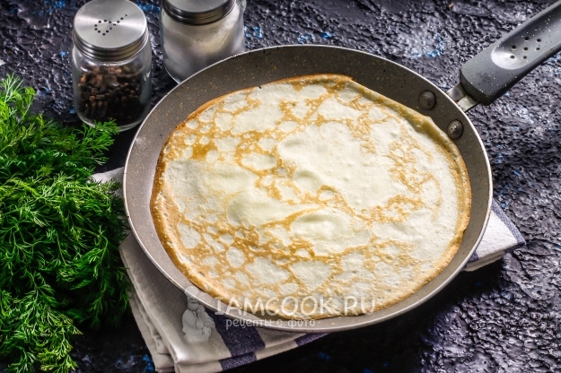 Испеките тонкие блины, обжаривая их по 1-2 минуте с каждой стороны.