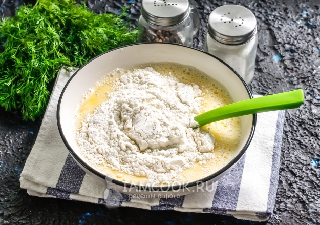 Всыпьте пшеничную муку и еще раз взбейте, стараясь не создавать комочки.