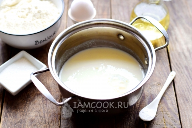 Ряженку вылейте в кастрюлю, установите на огонь. Нагрейте кисломолочный продукт до теплого состояния, непрерывно перемешивая его ложкой. Совершая данный процесс, не отходите далеко от плиты, поскольку нельзя, чтобы ряженка закипела и свернулась. Ряженка должна быть именно теплой. Ее также можно нагреть в микроволновой печи, но при этом необходимо четко установить время, которое соответствует мощности вашей СВЧ- печи, чтобы избежать перегрева ряженки.
