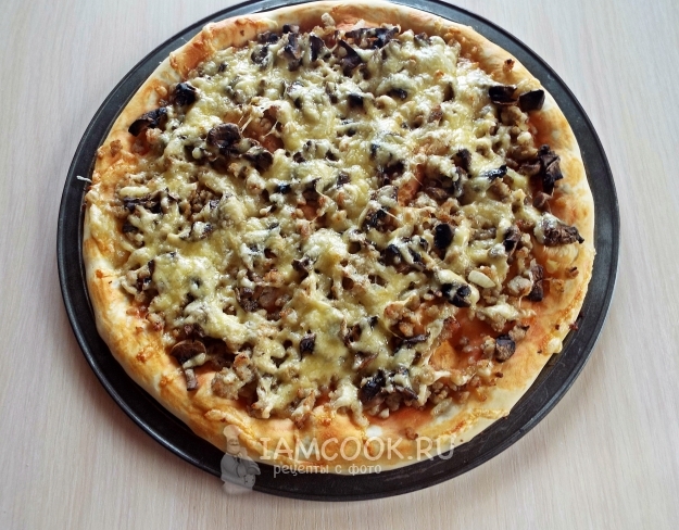 Готовность определяйте сами. А моя пицца с фаршем и грибами готова!