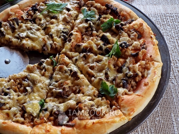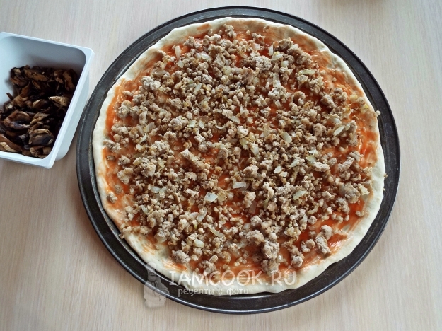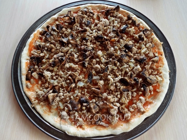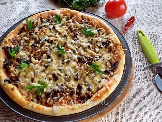 Пицца с фаршем и грибами - это очень сытная и вкусная выпечка на любой случай жизни.
