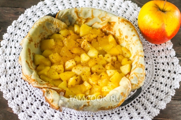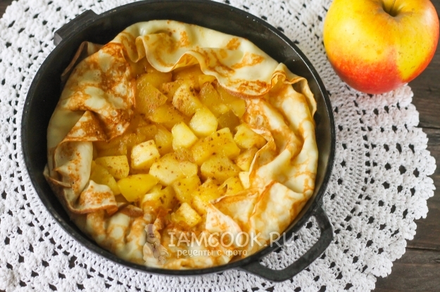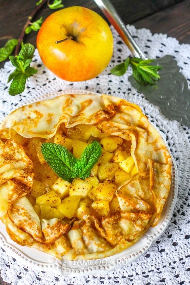 Тем, кто не любит заворачивать начинку в отдельные блины, как и я, рекомендую создать к завтраку или на перекус блинную галету с яблоками - такого нежного и тающего во рту десерта вы еще не пробовали! Ее с удовольствием съедят и дети, но, как и в случае с блинами, галета имеет свойство быстро заканчиваться. Поэтому для большой семьи приготовьте несколько штук таких десертов, которые можно подать как с охлажденной сметаной любой жирности, так и со взбитыми сливками или мороженым. Не забывайте про горячий чай с лимоном или ароматный кофе - напиток будет идеальным дуэтом для кусочка галеты.