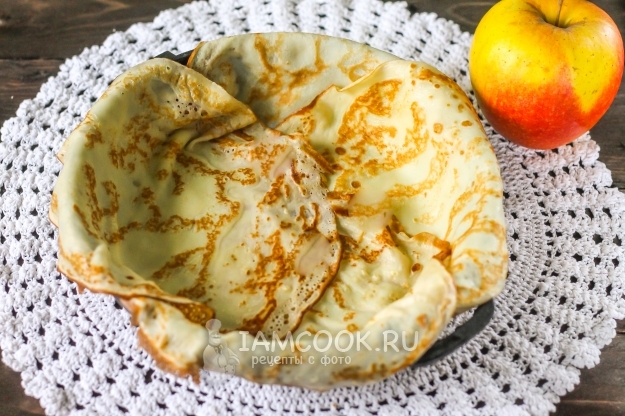 Тонкие блины для основы блюда можно приготовить заранее по любому из рецептов на сайте - создавайте сладкие блинчики, не кружевные, чтобы начинка не вытекла. Духовку разогревайте заранее и следите за краями блинов, выпекая их.