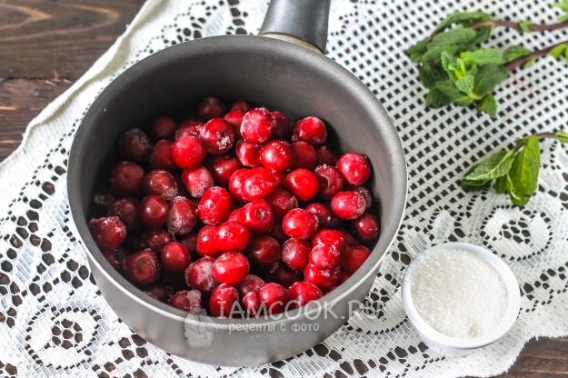 Свежую вишню промойте в воде и высыпьте в ковш или сотейник. Я использую замороженную, которую перед заготовкой всегда промываю.