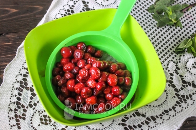 Затем процедите ягоды от сока и удалите из них косточки.