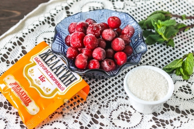 Я использую для создания вишневого конфи замороженную вишню, вы можете создавать десерт и из свежих ягод, если как раз сезон их сбора. Сахар добавляйте по вкусу, но так как конфи зачастую помещают в сладкий крем, то рекомендую оставить эту ягодную прослойку слегка кисловатой, чтобы торт или пирожные не были слишком приторными. Желатин прогревайте умеренно, так как после кипения он теряет свои желирующие свойства. Если есть возможность, его можно заменить агар-агаром, но вкус такого конфи будет существенно проигрывать.