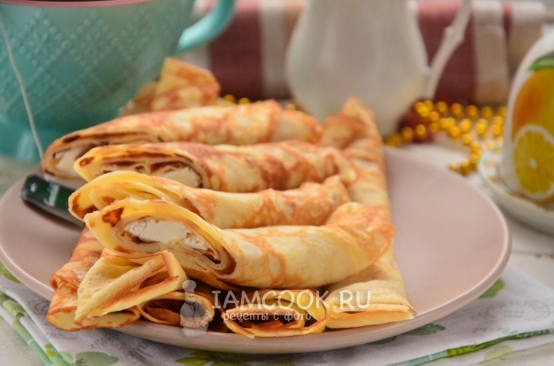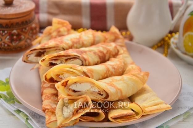 Заверните начинку в рулет из блинчика. Подавать их можно сразу - к чаю или какао.