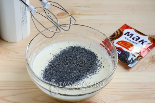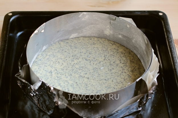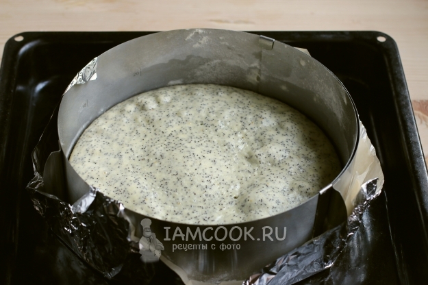 На малой скорости взбиваем тесто, чтобы не было комочков. После чего переливаем его в форму и отправляем в духовку для выпечки на 25-30 минут (так же, как и маковый корж).