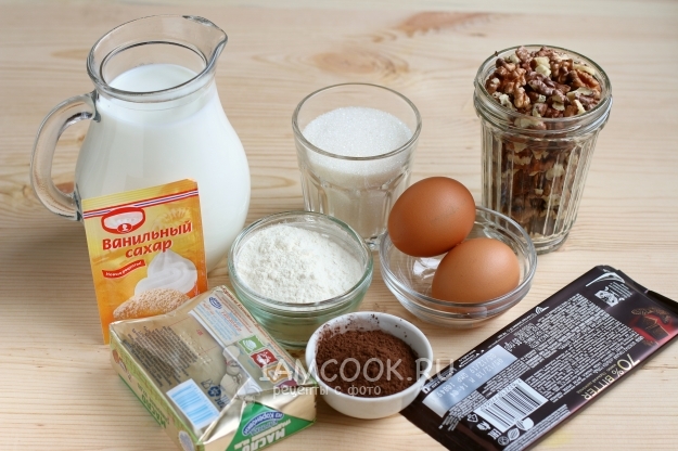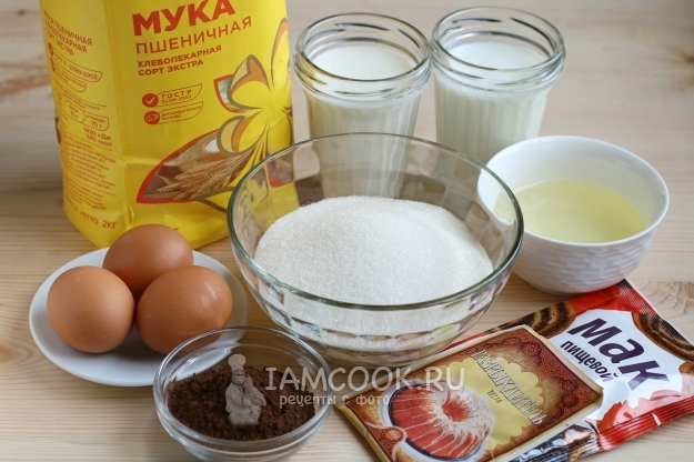 Приготовление торта «Министерский» с маком и орехами разделим на два дня, и в первый день испечем просто коржи, для чего возьмем продукты, указанные в списке ингредиентов.