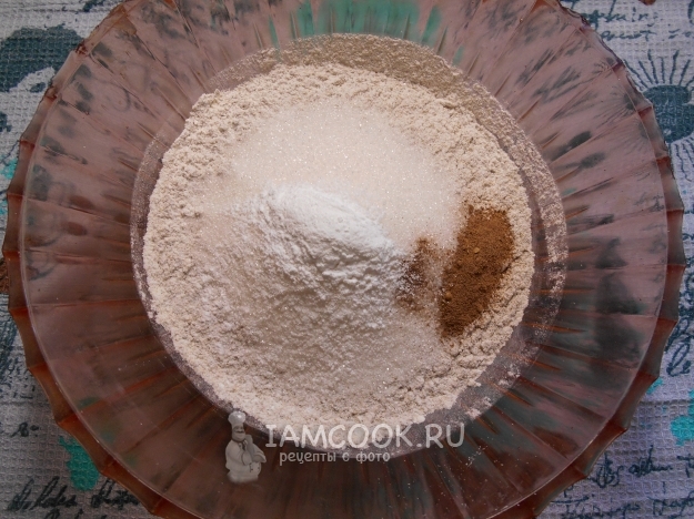 Добавим сахар, соль, разрыхлитель, специи. Размешаем сухие ингредиенты.