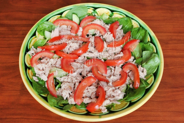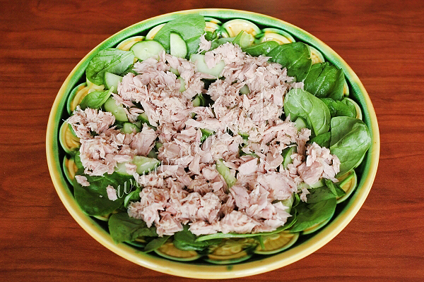 Салат с тунцом и шпинатом готов.