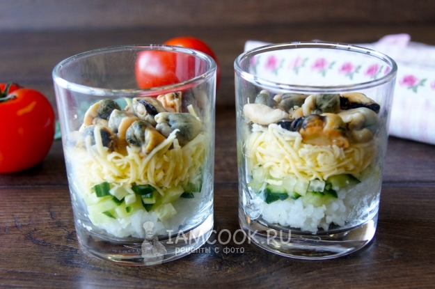 Затем выложила мидий.