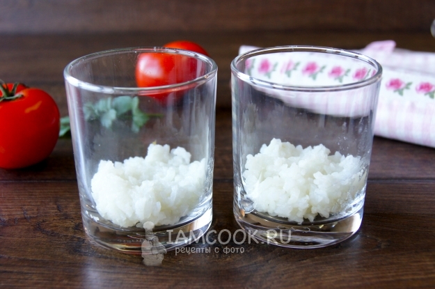 Рис сварила согласно инструкции на упаковке, полностью остудила и выложила первым слоем.