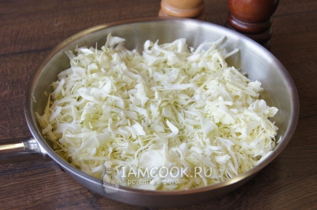 Капусту нашинковала тонкой соломкой и выложила в сковороду, можно в латку - главное, чтобы было толстое дно.