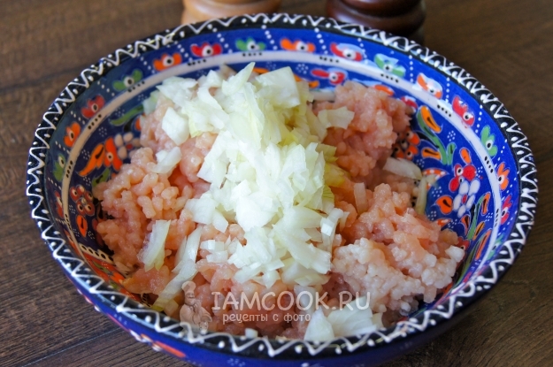 В фарш добавила рубленый лук, посолила, поперчила, приправила специями для мяса.