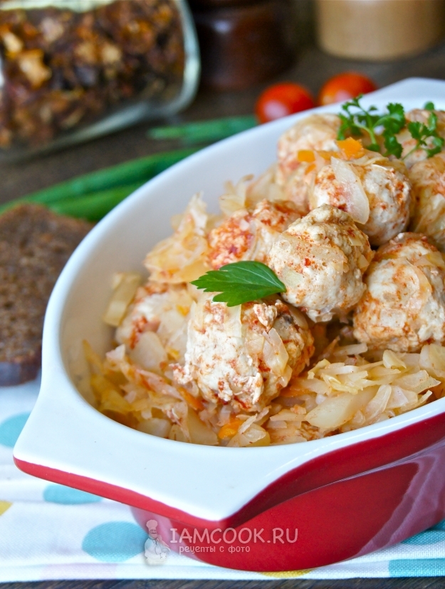 Вкусная, сытная тушеная капуста с фрикадельками готова.