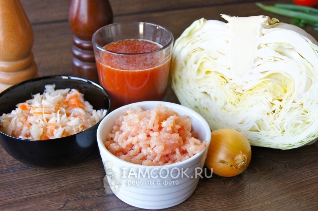 Подготовила все необходимые продукты для приготовления тушеной капусты с фрикадельками.