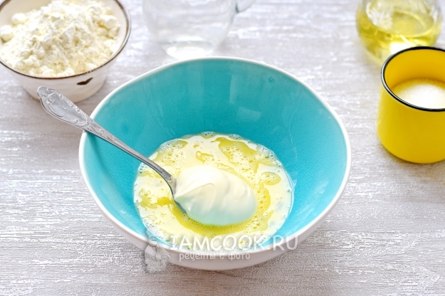 Далее в яичную массу погрузите указанное количество майонеза, старательно перемешайте. В итоге у вас получится пышная смесь. Майонез в идеале лучше применять домашний, то есть самостоятельно приготовленный.