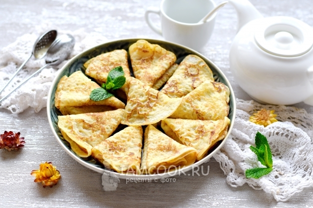Перед подачей блинчики сверните в виде треугольника, чтобы было удобнее их употреблять.