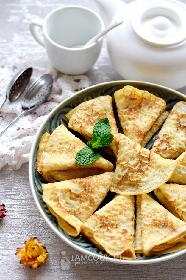 Кстати, блины на майонезе также можно готовить без яиц, поскольку данный продукт, в принципе, и сам состоит из яиц.