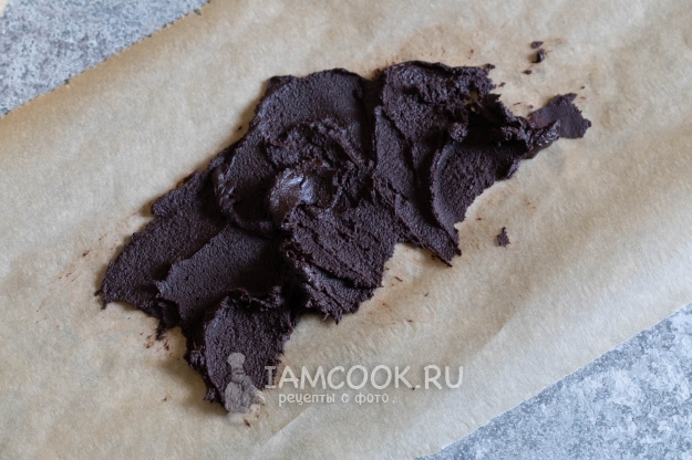 Покрываем ганаш вторым слоем кондитерской бумаги и раскатываем скалкой как можно тоньше.