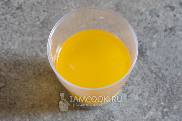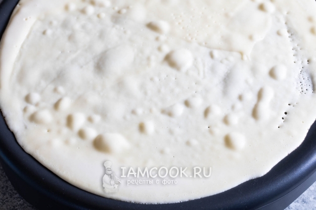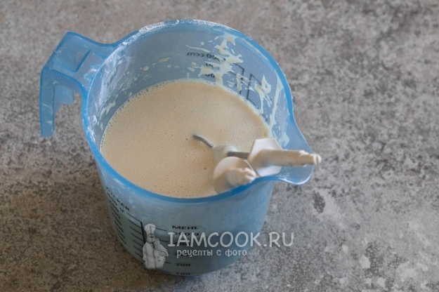 Смешиваем тесто ручным миксером на низких оборотах, добавляя ингредиенты в следующем порядке: яйца с сахаром, мука, растопленное масло, сметана, молоко. Должно получиться жиденькое тесто.