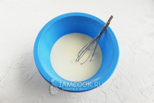 Тщательно размешиваем наше тесто, так, чтобы не было комочков. По консистенции оно должно быть жидким.