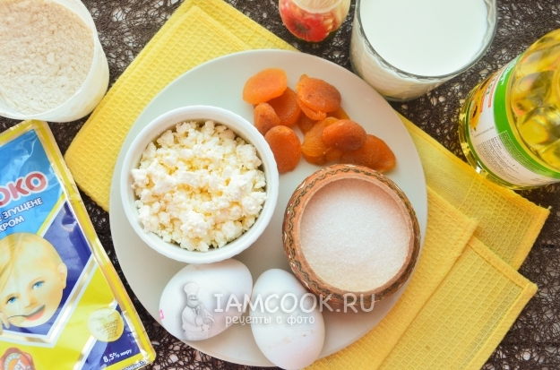 Подготовьте нужные ингредиенты - отмерьте нужное количество творога, муки, молока, сахара.