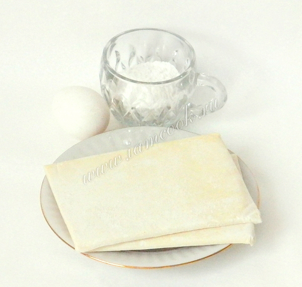 Подготавливаем ингредиенты. Размораживаем слоеное тесто.