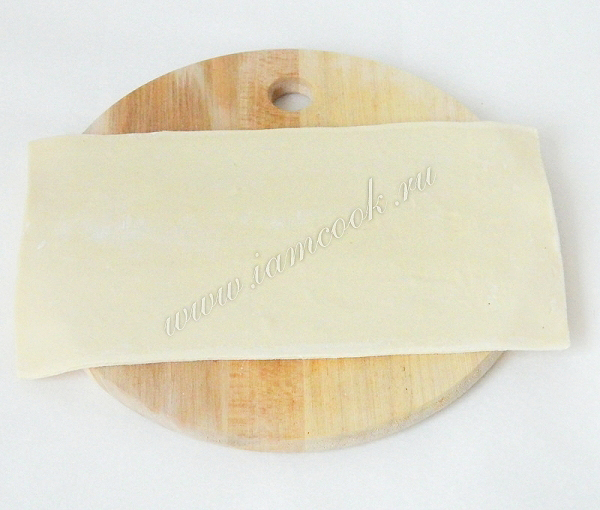 Размороженное тесто слегка раскатываем.