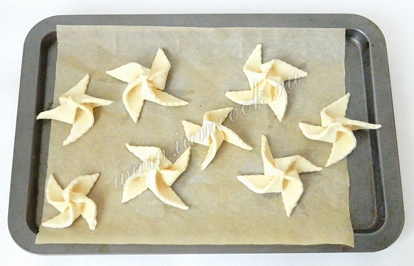 Очень простой и быстрый рецепт слоек, которые получили название "Ветрячки" из-за своей формы, напоминающей одноименную детскую игрушку вертушку. Эти слойки прекрасно подойдут к утренней чашечке чая. Вы их можете быстро приготовить к приходу гостей. Попробуйте!