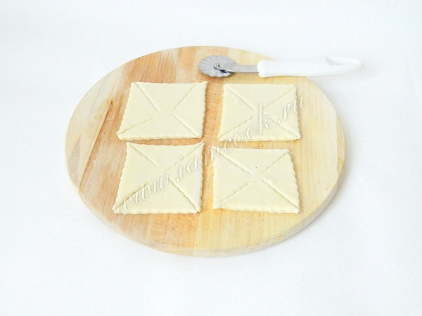 На квадратах делаем надрезы от угла к центру, но не до конца (как на фото).