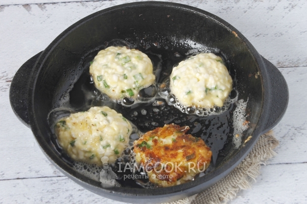 На сковороду наливаем рафинированное растительное масло, прогреваем его. Делаем огонь чуть больше минимального и выкладываем по небольшому количеству теста с помощью вилки, формируя круглые лепешки. Обжариваем с двух сторон по 5 минут - до образования на сырниках коричневой корочки. Выйдет примерно 10 небольших сырников.