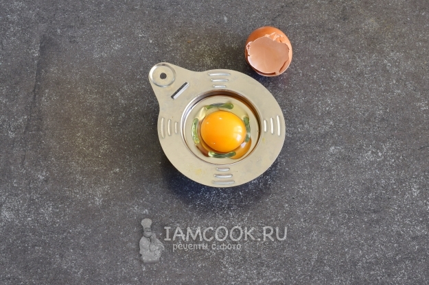 У куриного яйца отделяем белок от желтка. Белок нам для этого блюда не понадобится.