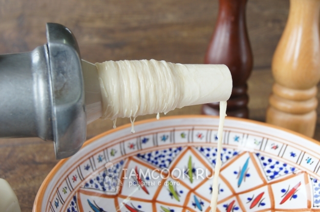 Натуральную оболочку промоем, насадим на специальную насадку.
