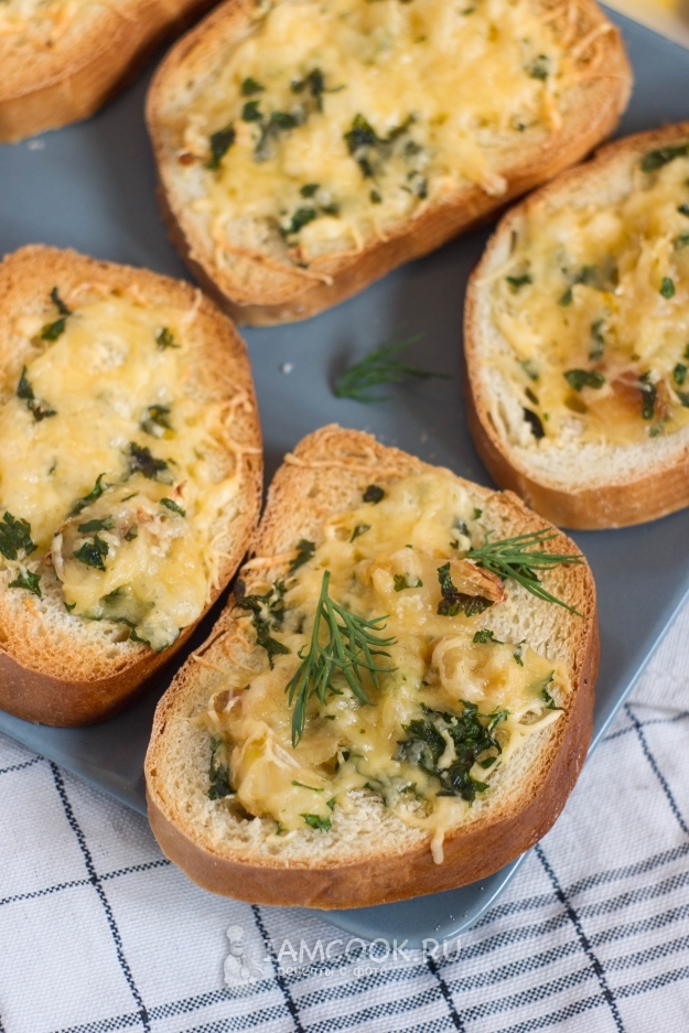 Готовые горячие бутерброды с запеченным чесноком и сыром подавайте к столу незамедлительно.