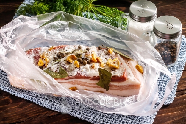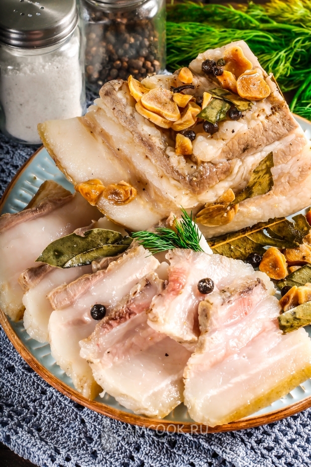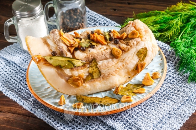 После чего разрежьте и выложите кусок сала на тарелку.