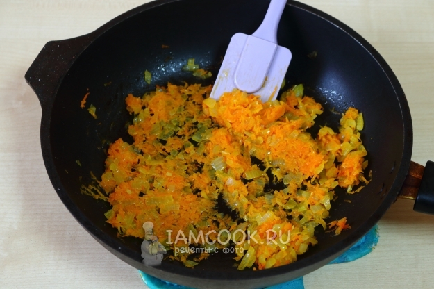 Пассеруем овощи в растительном масле на среднем огне до мягкости.